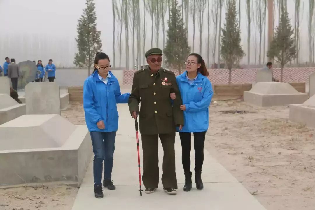 △清明节,志愿者陪沙海老兵悼念已故老兵。