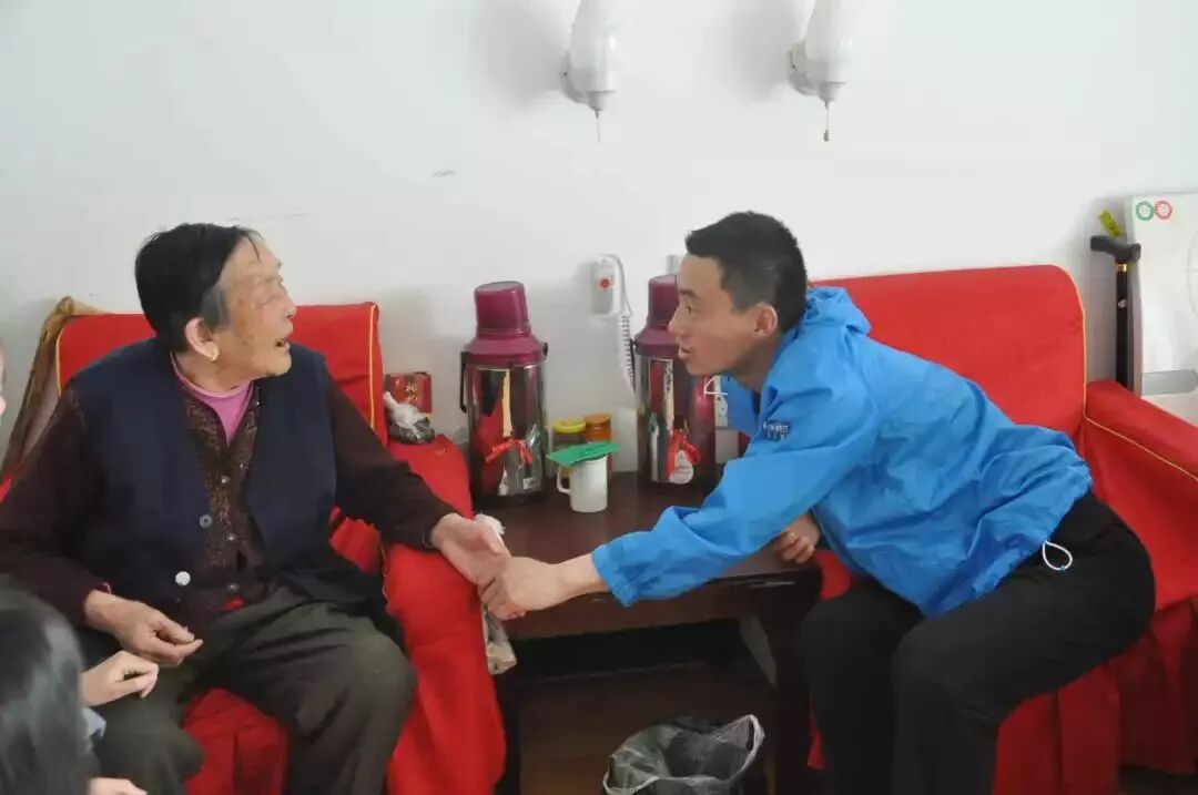 △志愿者和敬老院老战士聊天,听他们讲过去的故事。