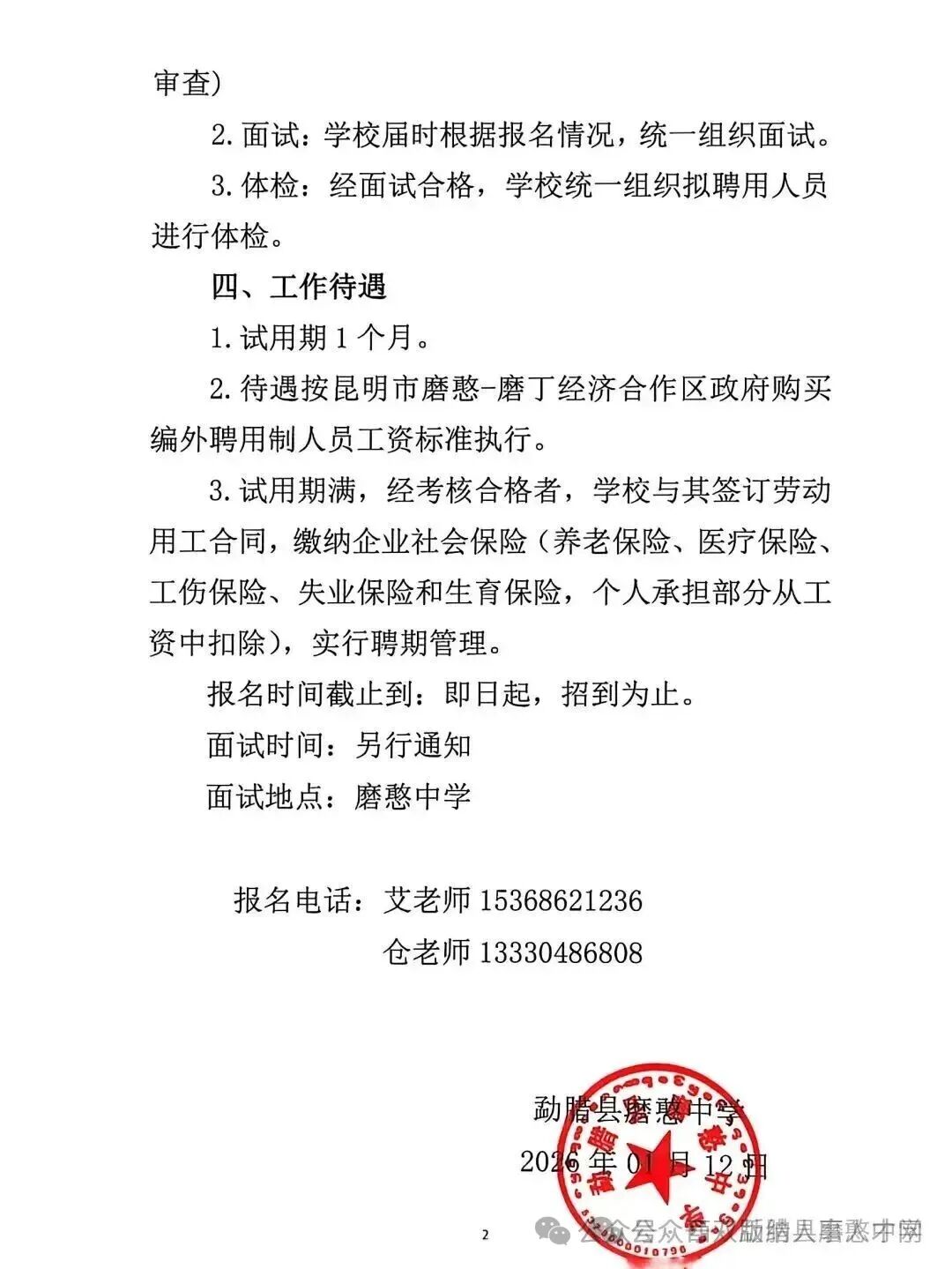 磨憨中学公开招聘(10人)公告