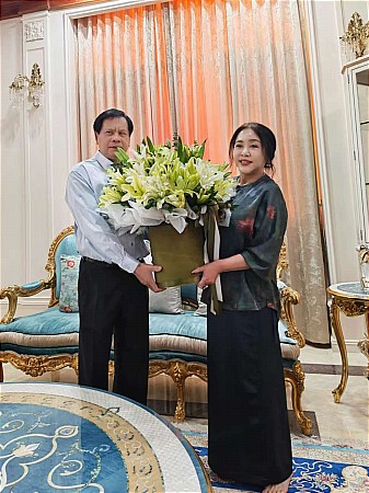 四月的万象,暖风裹挟着花香,傣历新年泼水节的喜庆气息早已弥漫在城市的每一个角落。值此佳节前夕,老挝云南众森公司代表监事王爱民(小双)专程从中国赶回万象,代表公司登门拜访老挝各界领导,以最诚挚的心意,为即将到来的泼水节送上最美好的祝福。