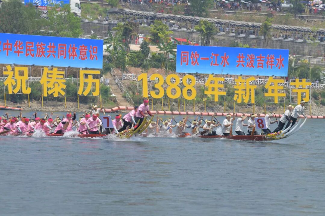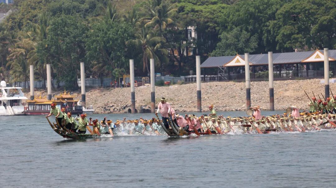 作为泼水节的重头戏之一,这场龙舟表演赛不仅展现了傣家人英勇顽强、团结协作的精神风貌,更承载着傣族人民千百年的文化记忆与精神寄托,让傣家文化在碧波竞渡中代代相传。