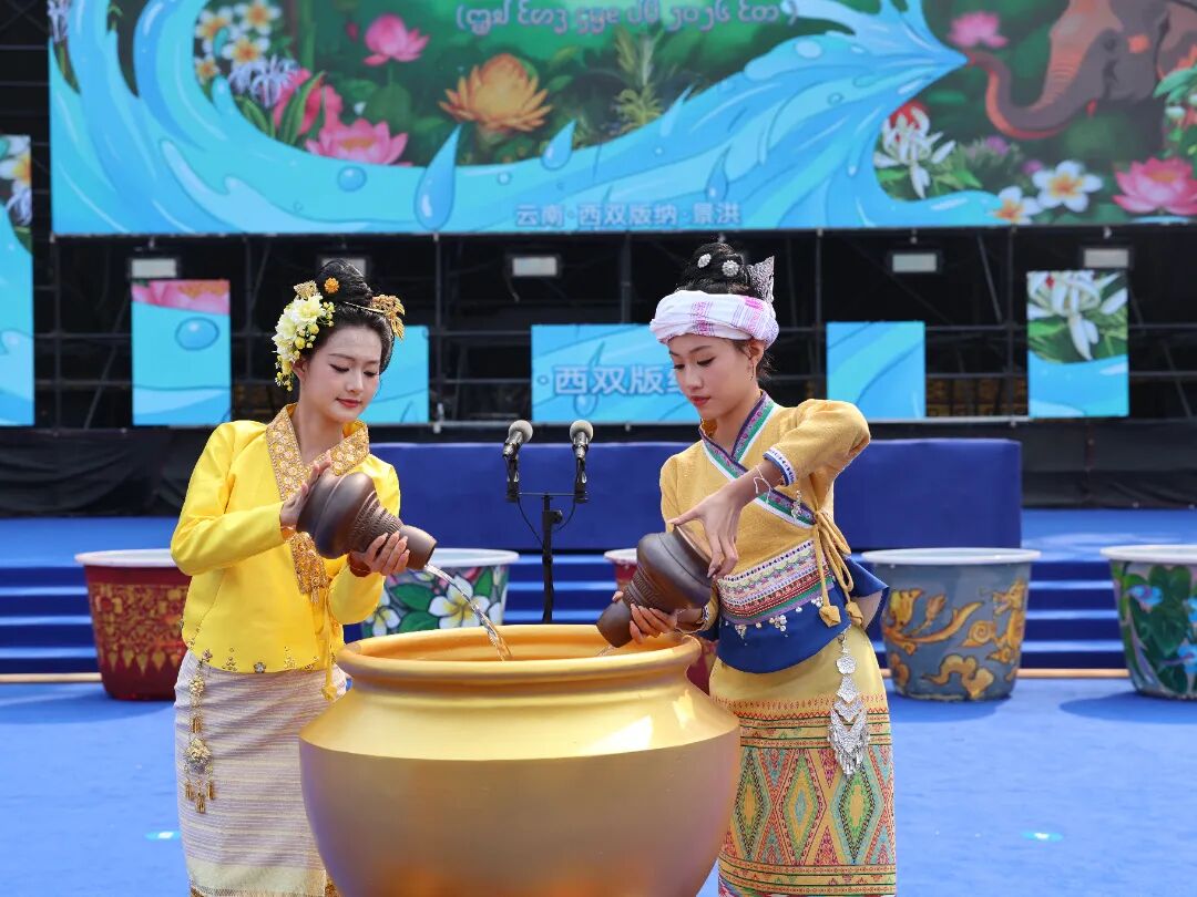 州委副书记、州长刀文,州委副书记、景洪市委书记赵刚,州委常委,州人大常委会、州政府、州政协领导班子成员等州党政领导参加泼水活动。