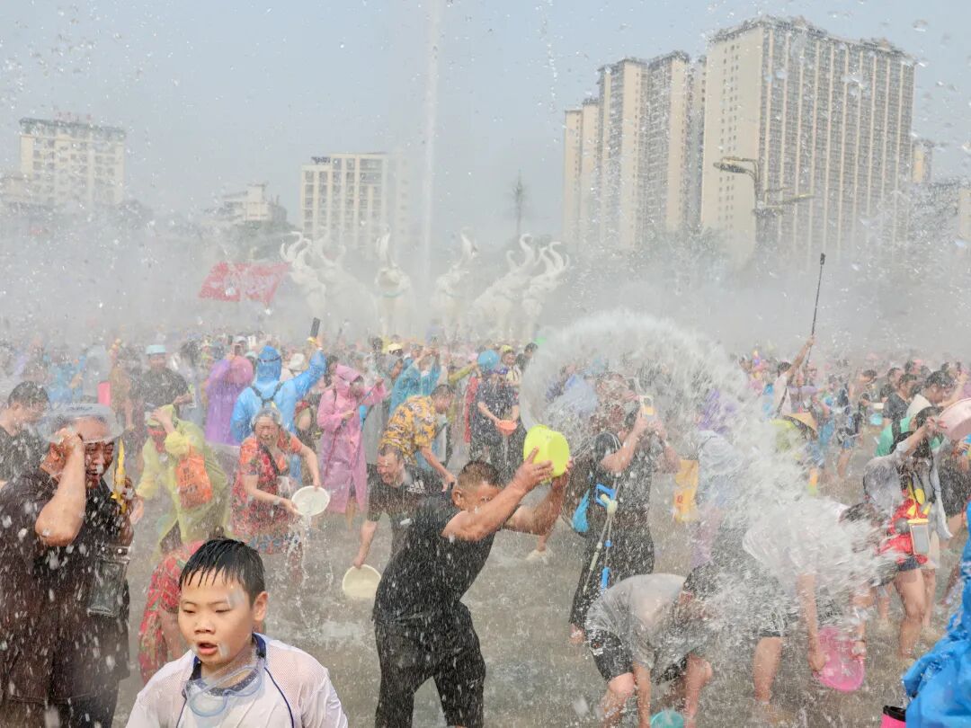在旅居游客较为集中的融创茂周边,一场别开生面的泼水大战也同步上演,旅居游客与本地居民们手持各式“武器”开展“水战”,大家尽情泼洒,共享清凉与祝福。水花飞溅之处,不分你我,只有祝福。清冽的水,不仅洗去了夏日的炎热与生活的疲惫,更架起了一座情感的桥梁。对于旅居在此的“新市民”而言,西双版纳不再只是他乡的风景,而是亲身融入的第二故乡。此刻,融创茂前的这场“水战”,既是西双版纳开放包容城市魅力的缩影,也是“有一种叫云南的生活”最鲜活的注脚。