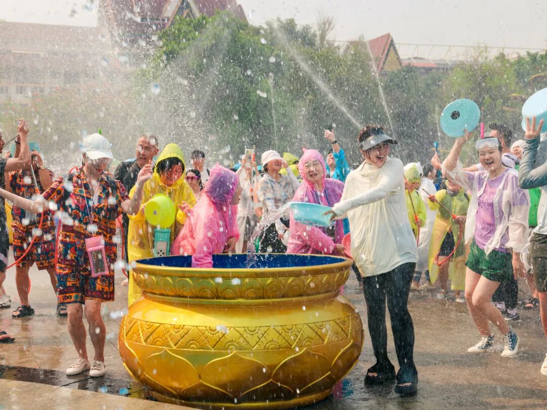 随着泼水狂欢正式启幕,泼水广场瞬间化作欢乐的海洋,人潮如织,水花漫天,欢呼声、笑声、鼓点声交织成一片,响彻云霄。广场中央数十米高的水柱凌空而起,将现场气氛推向最高潮。四面八方赶来的市民、游客欢聚一堂,和着激昂欢快的旋律,在一声声“水、水、水”的呐喊中尽情狂欢。一盆盆象征吉祥、圣洁的祝福之水凌空泼洒,带着最真挚的祈愿,洒向每一张笑脸,祝福每一个人平安顺遂、幸福吉祥。