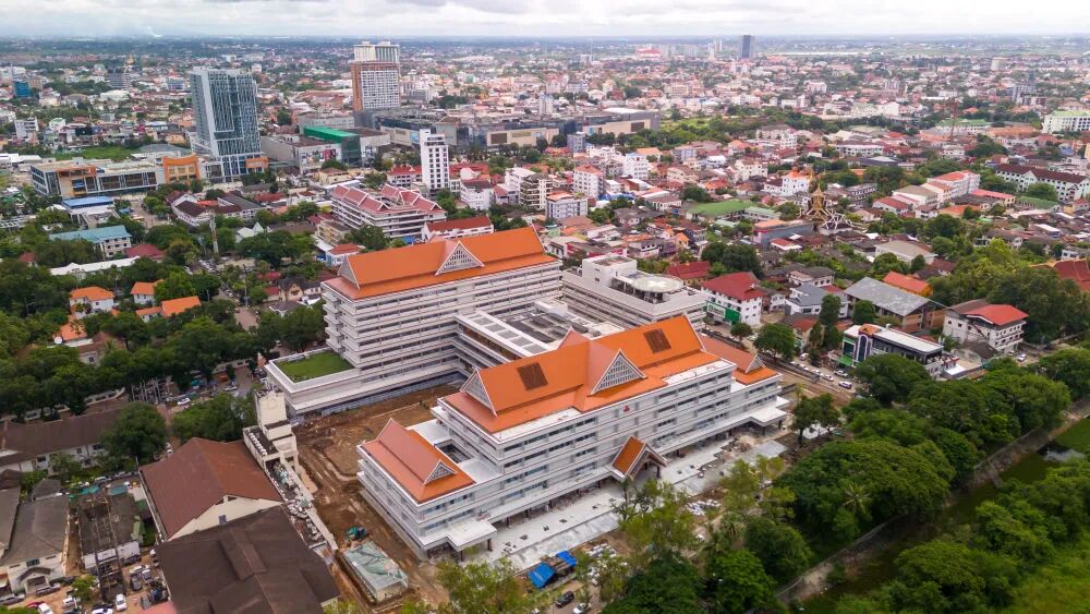 这是2024年9月11日在老挝首都万象拍摄的中国援老挝玛霍索综合医院(无人机照片)。新华社发(凯乔摄)