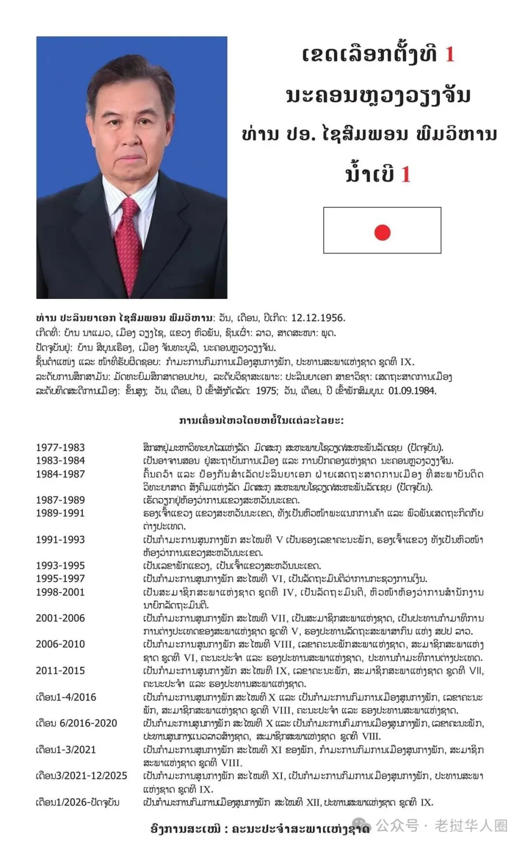 老挝人民议会议员候选 第1选区(万象市) 万象选区 1 号