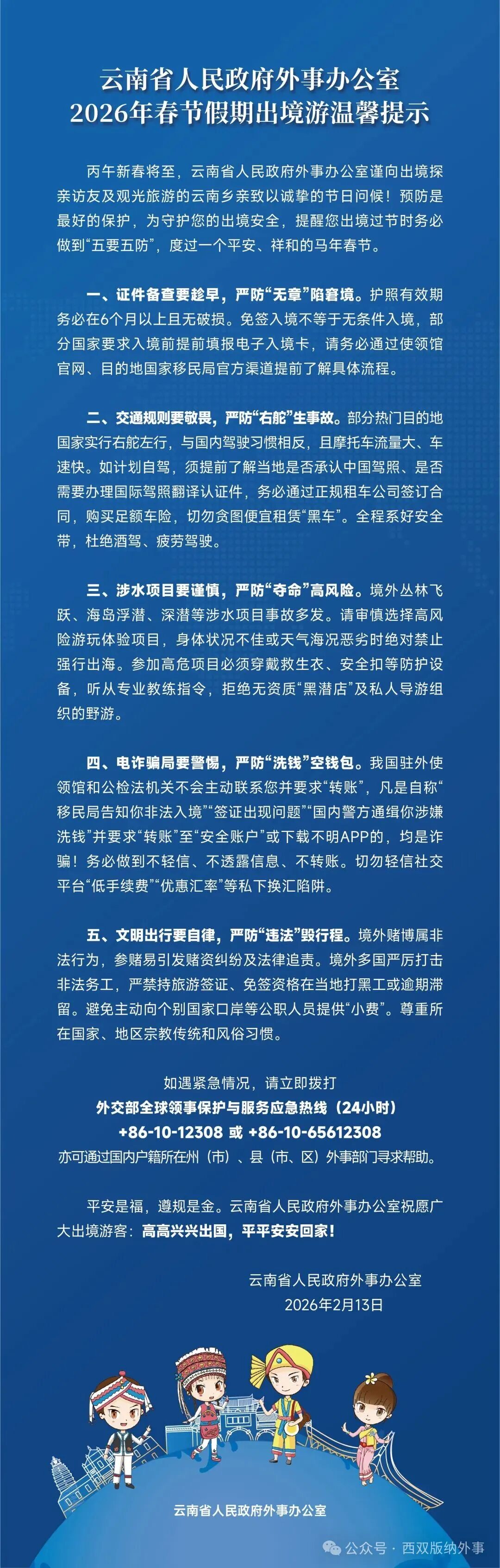 云南省人民政府外事办公室2026年春节假期出境游温馨提示 |