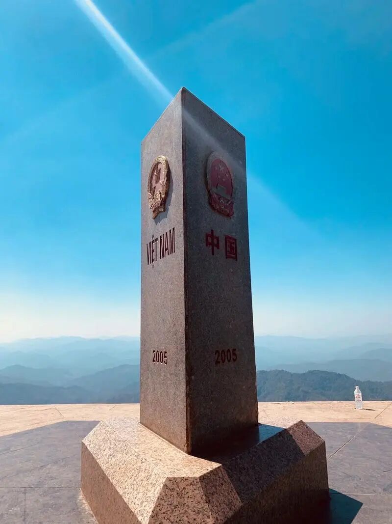 在我国云南省西南部中越老三国领土交界处的山峰——十层大山山顶,竖立着三国国界交界点界标。该地"一眼望三国",游客可同时眺望中越老三国的边境地貌。