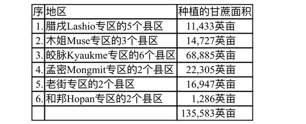 今年掸邦北部各专区种植的甘蔗面积如下: