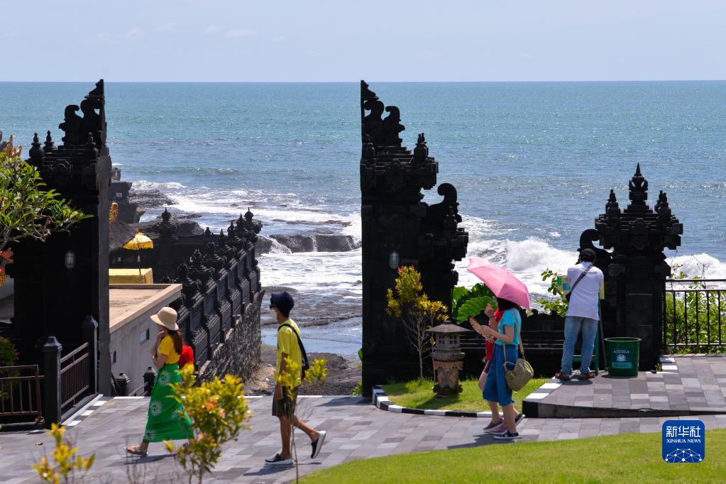 12月18日,游客在印度尼西亚巴厘岛海神庙景区参观。