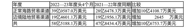 2022—23财政年度向国外出口的情况,及与上财政年度同期相比的情况如下表: