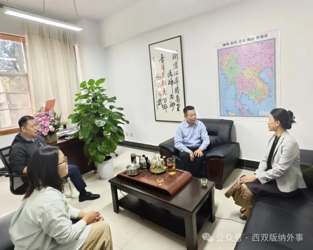 2026年1月20日,老挝驻昆明总领事馆驻景洪领事办公室主任魏丽雅·西阿卡彭到访西双版纳州人民政府外事办公室,与州外办党组书记、主任黄磊进行交流座谈,就进一步加强双边互联互通、经贸往来及人文交流等共同关心的事宜交换了意见。魏丽雅·西阿卡彭主任还对西双版纳州成立73周年表示热烈祝贺。