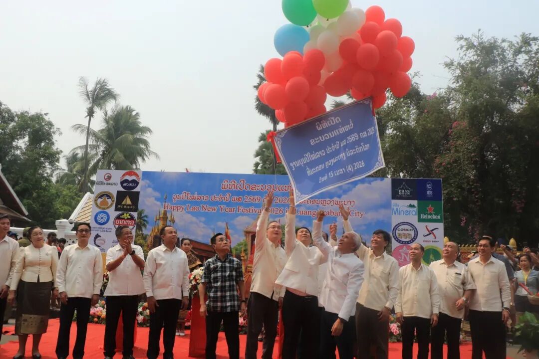 4月15日,驻琅勃拉邦总领事张社平和夫人杜晓曦应邀出席琅勃拉邦2026年老挝新年传统巡游观礼。老挝党中央政治局委员、中宣部部长坎潘,前副总理宋沙瓦,琅勃拉邦省委书记本倰,省政府主席本勒等共同观礼。