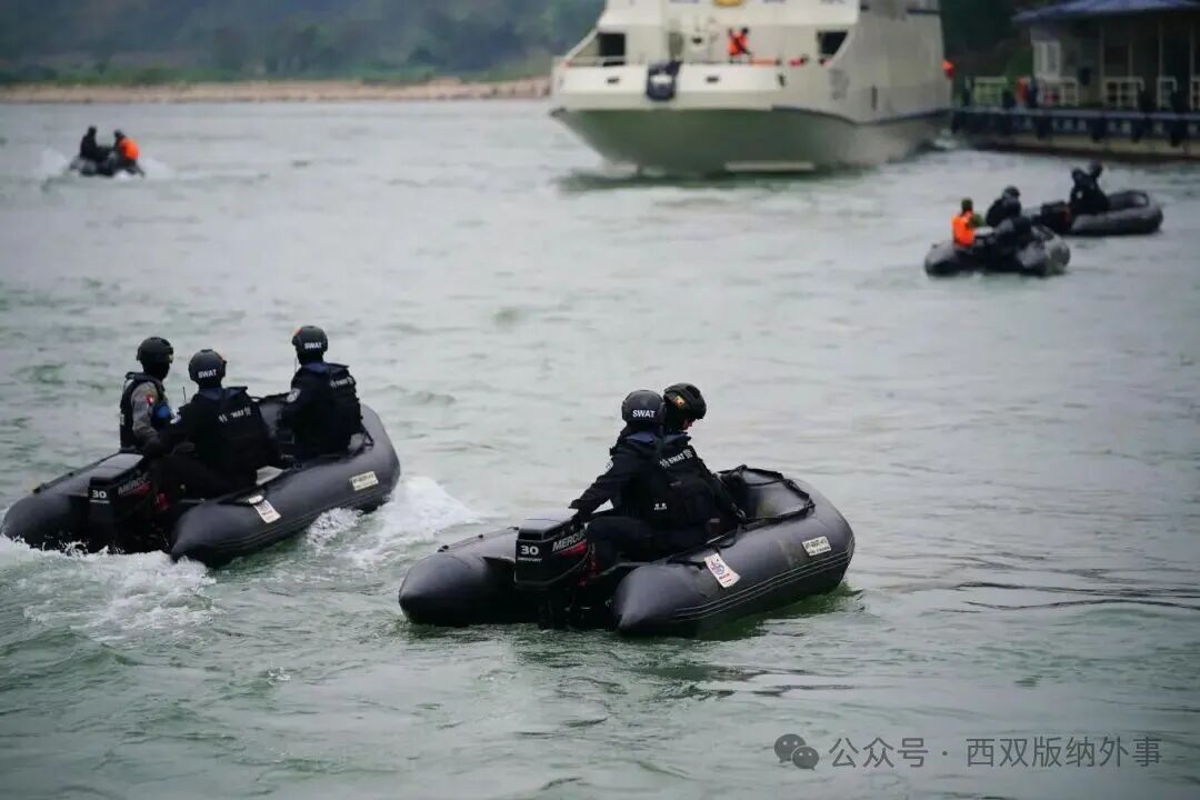 12月25日上午10时,中老缅泰湄公河联合巡逻执法四国有关执法部门在澜沧江景哈水域开展“守望—2025”中老缅泰四国处置水上突发事件联合演练,旨在深入贯彻落实澜沧江—湄公河执法安全合作部长级会议精神,提升四国执法部门联合处突实战能力,促进执法合作不断走深走实。