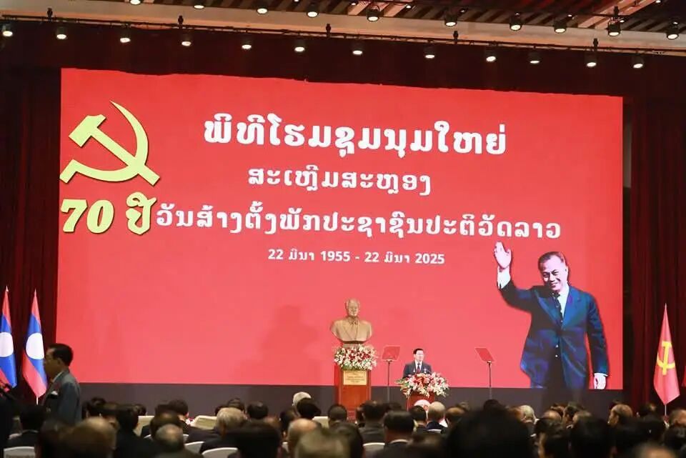 老挝资讯网万象报道,2025年3月22日,老挝人民革命党成立70周年庆祝大会在首都万象隆重举行。老挝人民革命党中央总书记、国家主席通伦·西苏里,中央政治局委员、政府总理宋赛·西潘敦,以及老挝人民革命党中央委员、中央书记处书记、前党和国家领导人、革命老战士、各部委领导、退休干部、军警代表、青年学生代表等出席了大会。