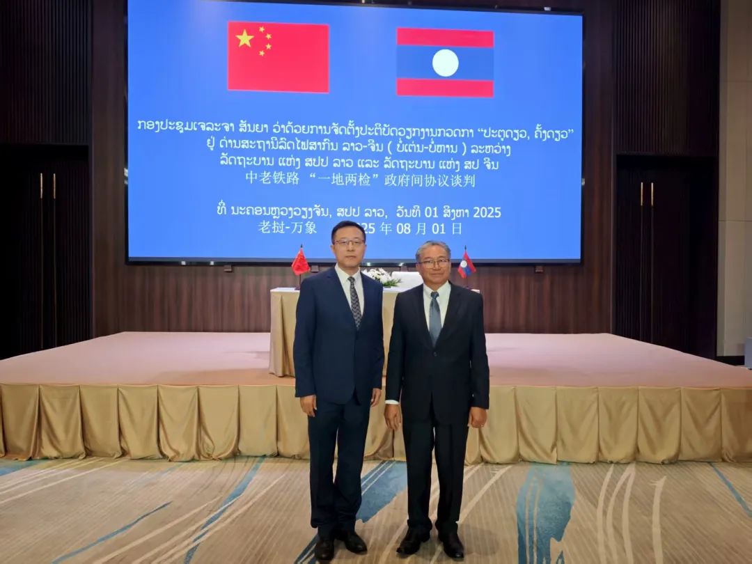 2025年7月31日至8月1日,中老双方在老挝首都万象举行中老铁路“一地两检”政府间协议文本谈判。外交部边界与海洋事务司副司长赵立坚与老挝外交部国家边界委员会办公室主任阿努辛共同主持。两国外交、公安、海关、移民、铁路等部门和有关地方代表参加。