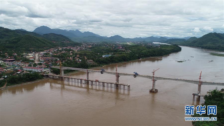 这是7月28日拍摄的合龙后的中老铁路老挝琅勃拉邦湄公河特大桥。 随着最后一个合龙节段混凝土的浇筑,中老铁路老挝琅勃拉邦湄公河特大桥28日成功合龙,实现全桥贯通,比计划工期提前7个月。 新华社发(熊天泽摄)