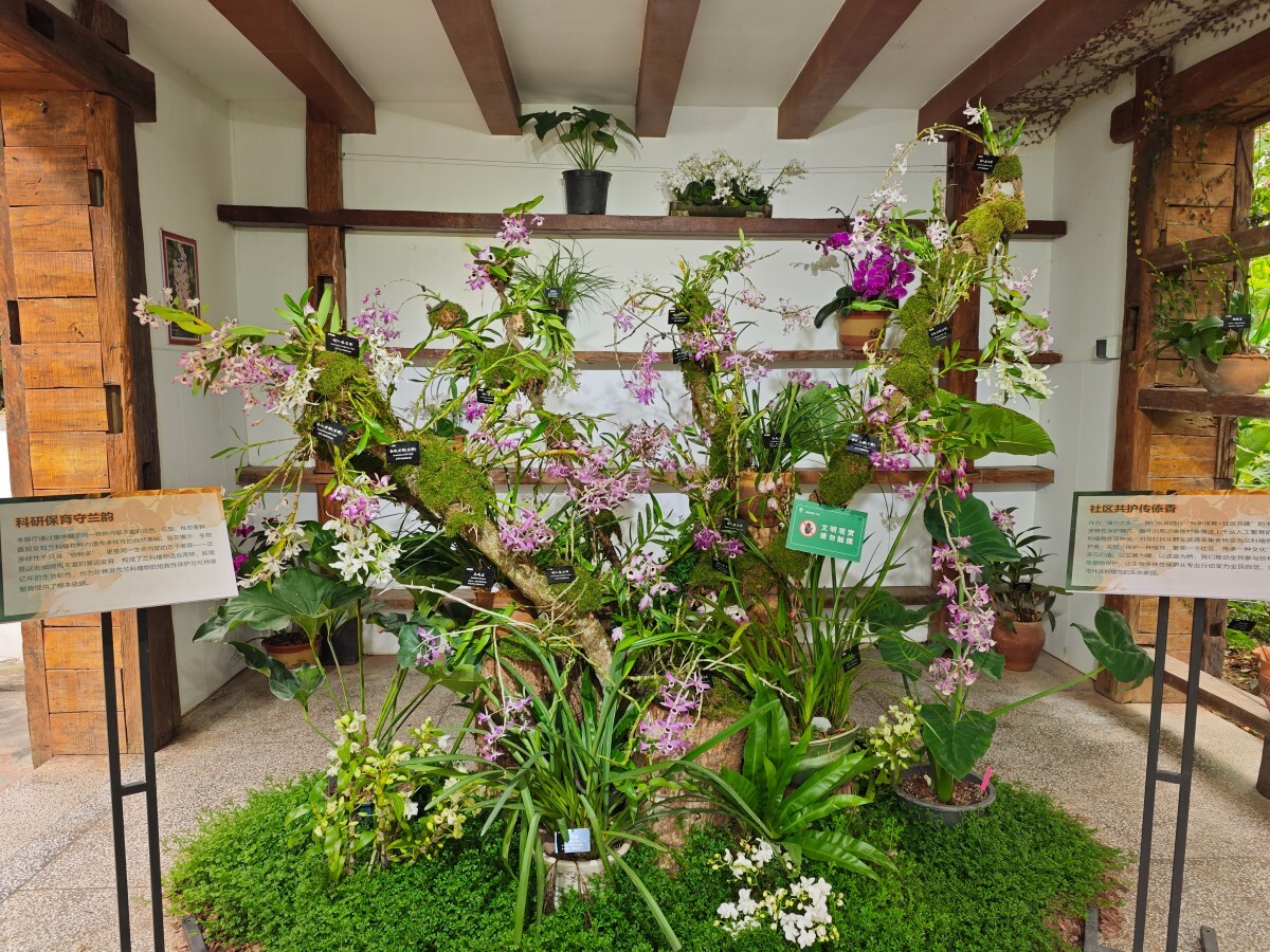 本年度的兰花展以“自然之兰 大自然的馈赠”为主题,延续了往届兰花展的经典构思,并在多个细节加以创新,重点打造了“蝶之序曲”、“热带兰花掠影”、“科研保育守兰韵”、“社区共护传傣香”、“兰谱华章”等10个小展区,集中展示了来自全球各地的200多种兰花原生种或园艺品种。通过模拟兰花的原生生态环境精心布置,让游客仿佛置身于热带雨林之中,并结合科普展板、互动体验等方式,向公众普及兰花的生态习性和保护知识,呈现一场融合美学与科学,集兰花的风姿、保护成果与文化内涵相结合的兰花盛宴。本次兰花展重点打造的10个小展区遍布在荫生植物园的各个角落,请随我一起来欣赏吧。