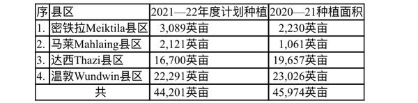 比较这两年来的种植面积,会发现原来种植面积较少的密铁拉、马莱县区,今年种植面积增加了;原来种植面积较多的达西、温敦县区,今年种植面积减少了。不管是什么原因,就希望各地区农民,能尽量发挥自己的耕种能力,完成有关种植计划,在为自己家庭本身增加收入的同时,也为当地市场提供农业产品,促进当地市场的繁荣发展。
